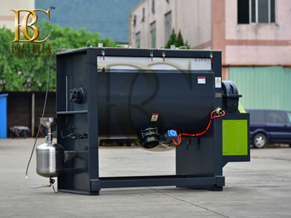 博昌答:首先我們需要在粉體臥式攪拌機設(shè)備上面裝置噴霧系統(tǒng),規(guī)定多少容量,使液體變成霧化形狀噴下去,這樣就解決了問題,效果更好。