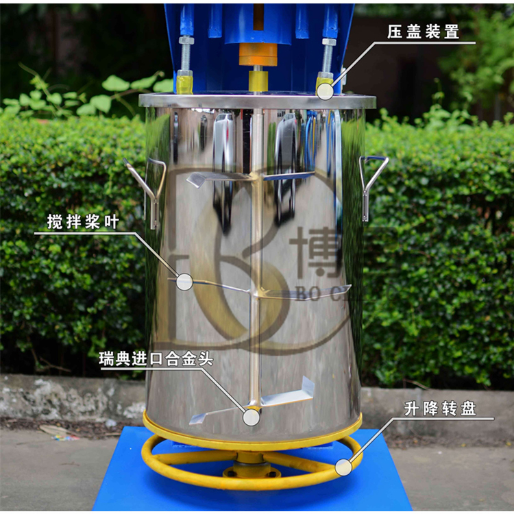 3、原料攪拌完成,即可放下攪拌桶。