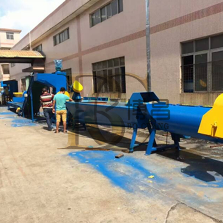 第十一步、漂洗機將經(jīng)高速摩擦洗脫離開的油污、標簽及PE、PP瓶蓋、清洗洗滌劑等進行進一步分離;為保證漂洗的效果,生產(chǎn)線連續(xù)設(shè)置有兩臺漂洗機。漂洗機上自帶有螺旋上料機將碎片持續(xù)向后輸送。